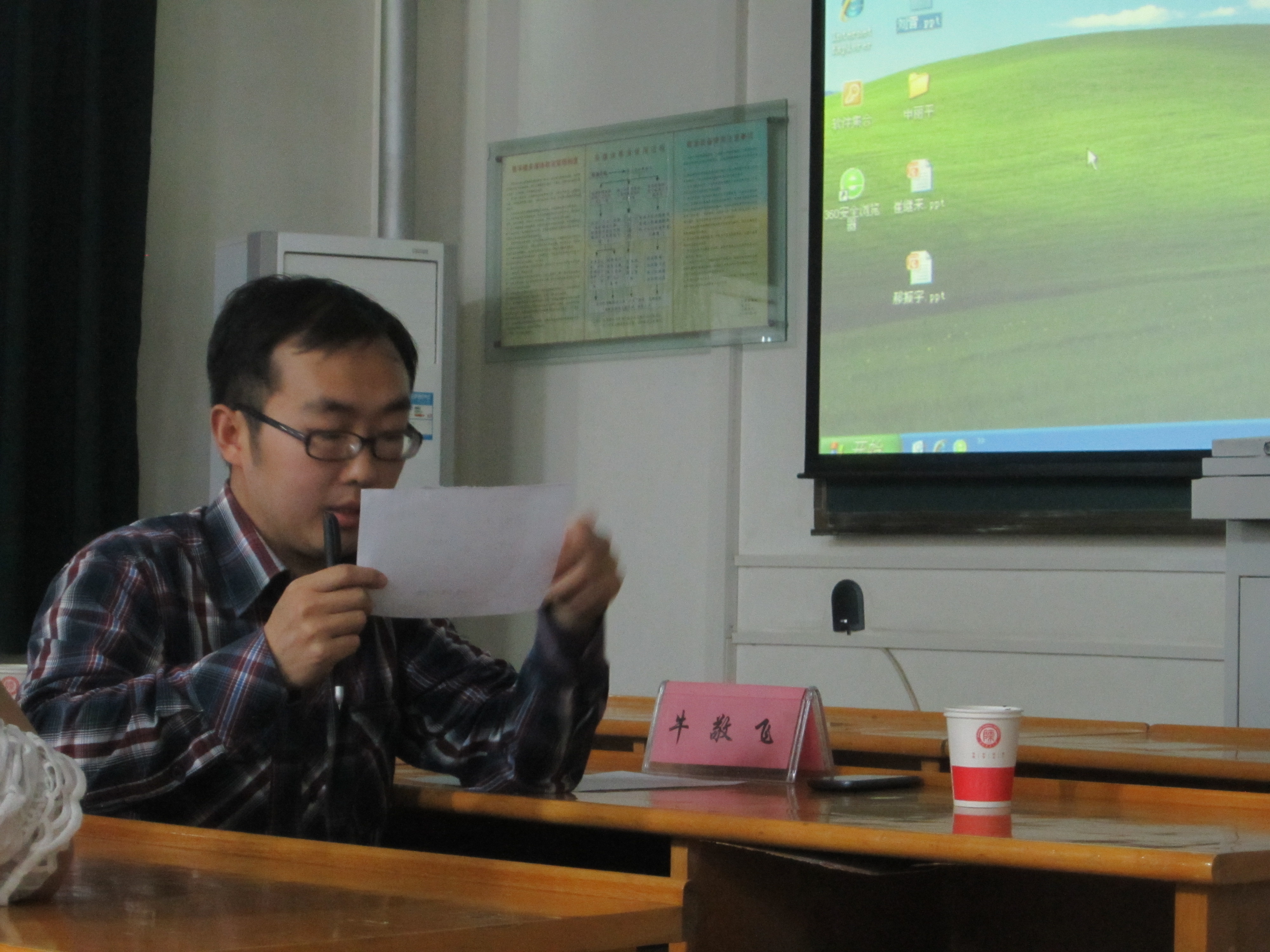2014年5月8日下午,太阳成集团tyc33455第四届研究生说课比赛在文渊楼602教室举办。本次说课比赛由研究生会实践部部长许圆圆主持,牛敬飞老师和具有丰富中学教学经验的王畅学姐担任评委。公司2012级和2013级共9名研究生参加此次比赛。