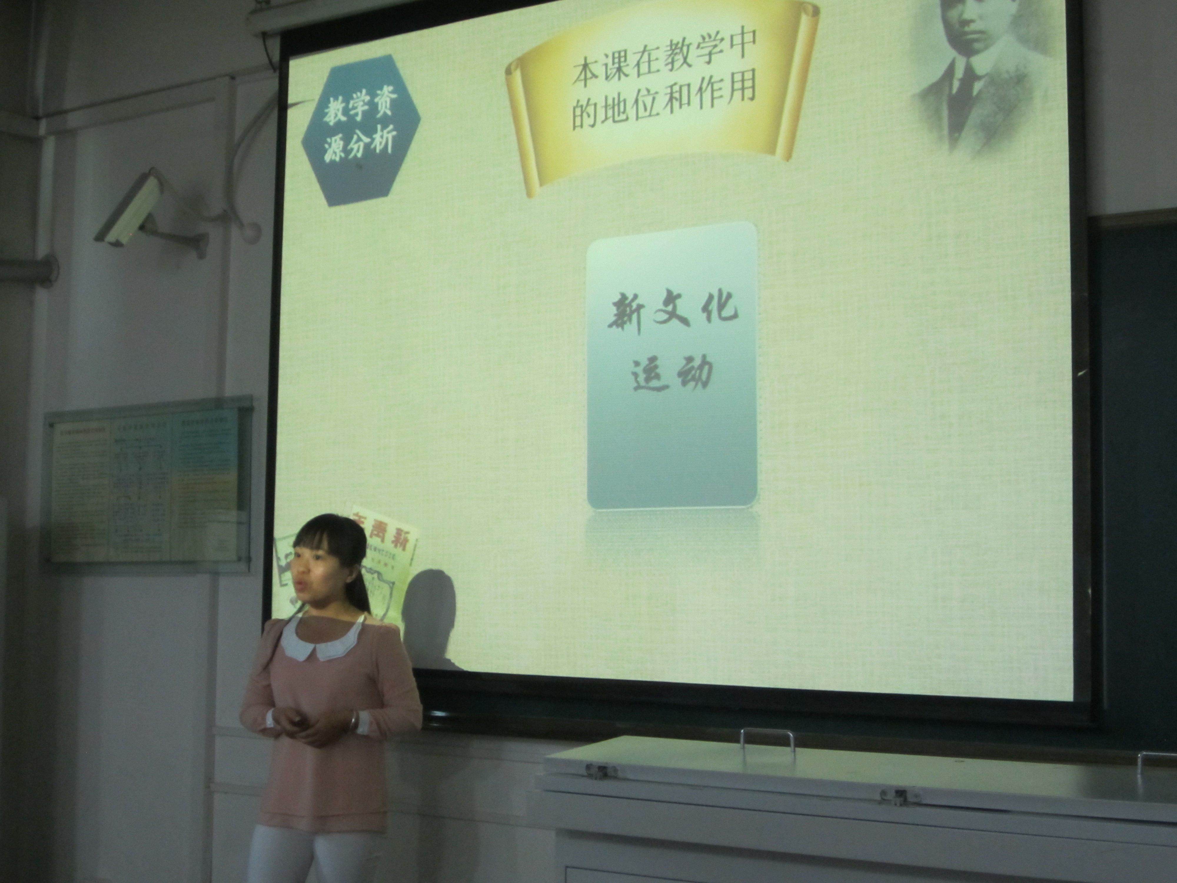 首先,主持人介绍了此次比赛的规则。本次比赛采取三人一组的形式进行,每组选手说课结束后由评委点评,最后按照选手的总分数高低决出比赛名次。接下来,参赛同学纷纷展现自己的“教师”魅力。第一位上场的申丽平同学以当前最热的《舌尖上的中国》开启了说课内容;郝振宇同学以端正的教态、洪亮的嗓音赢得了观赛同学的掌声;周婷婷同学则以内容充实的课件、循序渐进的引导带领大家进入真实的课堂;邓凤玲同学更是以清晰的说课思路、流利的语言得到同学们的赞许;最后出场的刘霄同学将此次比赛引向了高潮,她以精美的课件、充实的说课内容和自信的表达征服了评委和现场同学。