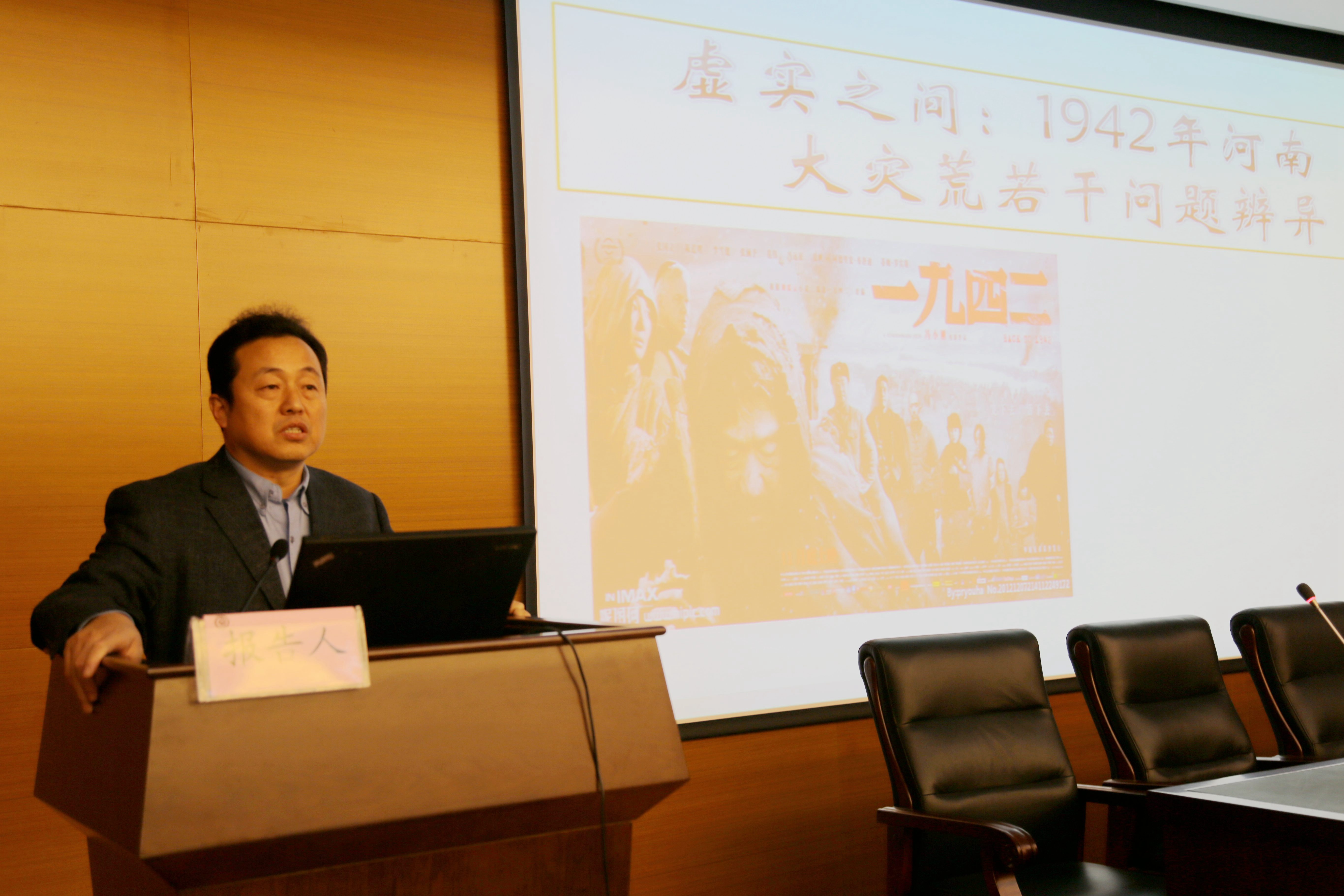 江教授在讲座中首先对电影《1942》进行了相关解读,指出影片中存在的对历史事实情节夸大的历史错位问题,并做出相关分析和判断。随后,江教授使用丰富的多媒体资料和图片讲解了大灾荒的研究情况,强调要正确对待历史探索和影视史学之间的关系,合理、科学、批判地利用历史资料;史学者要学会在坚持历史研究传统的同时,正确处理好史学和影视史学创作之间的关系。最后,黄教授分别从史学和影视史学、灾荒研究方法论等几个方面作了相关总结。