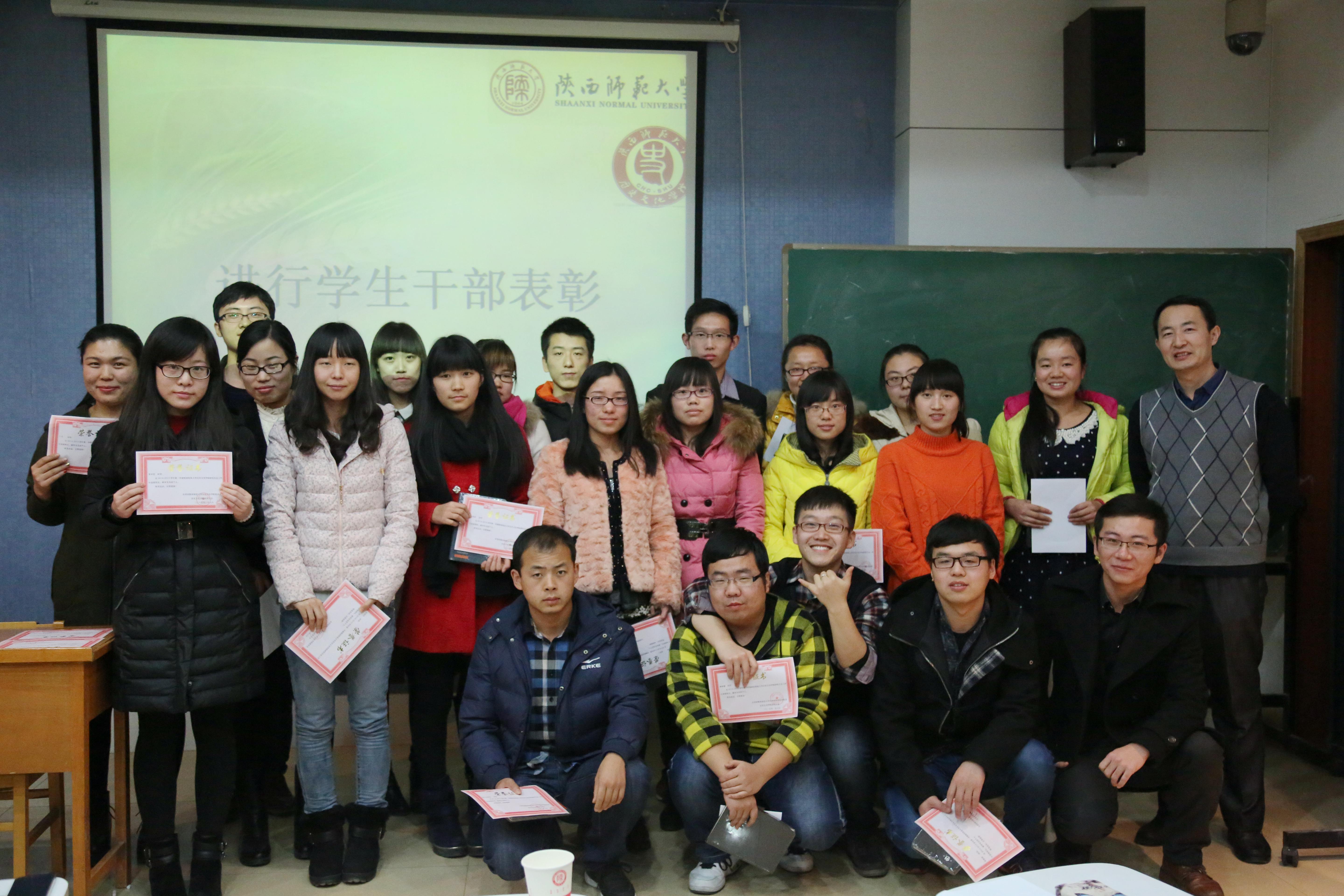 2015年1月7日晚6:30分,太阳成集团tyc33455第九届研究生会2014-2015学年第一学期工作总结暨表彰大会在文渊楼三层多媒体教室举行。大会由主席张腾主持,团委书记、研究生辅导员柴永昌和研究生会全体成员参加了本次大会。