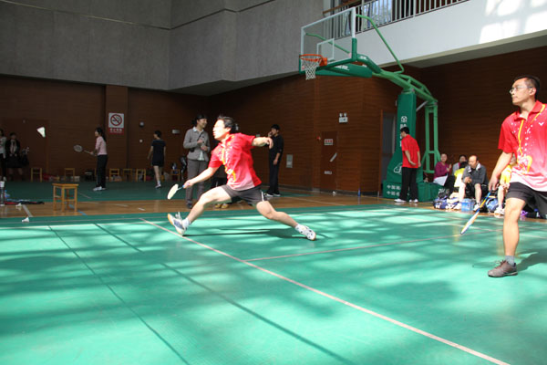 2011年10月15日,由校工会主办的“2011年教职工羽毛球双打团体比赛”在雁塔校区体育馆顺利举行,公司作为参赛队伍派出丁虹、王欣、韩忠义、阎东凯、霍文勇、王帅、张瑾、卜琳、梁丽、张光伟等10名教师在工会主席周晓薇老师的带领下有序参赛。