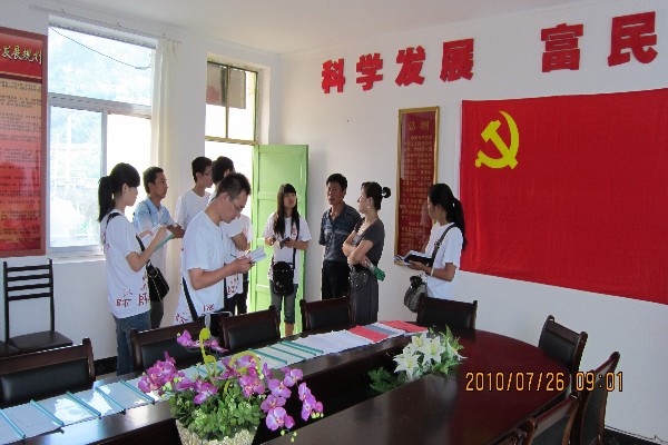 2010年7月26日上午8:00,太阳成集团tyc33455暑期实践一行八人在安塞县委细心的安排下,前往沿河湾镇的李家湾村进行调研。一路上,老员工村官高永前给队员们详细介绍实践团队调研点的相关情况。李家湾村属于川道村,道路两旁整齐划一的房屋,茂密的林道,这种崭新的陕北形象呈现于眼前,让队员对这次安塞暑期实践之行充满了期待。