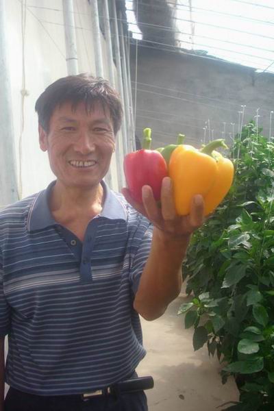 随后,在他们的陪同下前往参观农业生态示范园,该村棚栽业于1992年从山东寿光引进技术开始发展,2002年正式建立示范园,现已初具规模并在技术上达到了较高水平,不仅采用了套种、立体种植模式等技术,同时还引进了荷兰、台湾等地的新品种,并且积极加强对菜农的技术培训。在专业人员的带领下,实践团队先后参观了他们第五代新型大棚4、6和9号三个代表性的大棚,李家湾生态示范园的发展和成绩令人震撼,并成为全国各地生态示范园的学习的良好范式,高延明书记托起手中的彩椒露出了喜悦的笑容,这是生态棚栽业取得卓越成效的最好见证。先进的生态示范园成效证明了坚定实施绿色产业富民发展战略,依靠科技进步,扩大产业规模,把棚栽业发展成为黄土地上一项富民强县的支柱产业,这个战略的科学性和前瞻性,有力地推动了当地农业产业化的快速健康发展。参观持续了一个小时,实地的考察让队员对安塞生态农业的意义和取得的成就有了更深刻的了解,对安塞新农村建设也有了新体会。