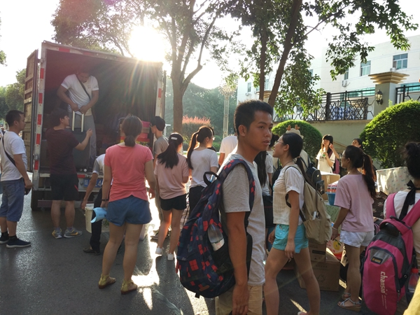 经过前期的充分准备和精心组织,7月7日晚7时左右,员工校区搬迁工作顺利开始。373名搬迁员工、6辆搬迁车辆、15次往返输送,4个小时持续时间是整个搬迁工作的真实写照。虽然天气炎热、天色渐黑,搬迁现场热火朝天,男生不仅搬送自己的行李物品,还积极帮助女生,女同学则尽量自力更生,同学们展现出了高度的集体荣誉感和团结协作精神,展示了公司学子良好的精神风貌。搬迁现场,公司党委副书记杜海斌老师全程亲临指导工作,团委书记柴永昌,辅导员洪海安、丁武、王欢、付增祺和部分员工干部通力协作,积极协调,确保了搬迁工作的顺利圆满。