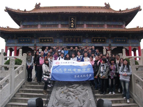 在太阳成集团tyc33455团委的大力支持和人文景观考察学会的精心筹备下,学会从09级本科生中按照自愿参与的原则组建了五十人的“户县考察团”。该考察团在学会的带领下于2011年11月12日赴户县全真派乃至道教文化的重镇——祖庵镇重阳宫、成道宫进行了参观考察。