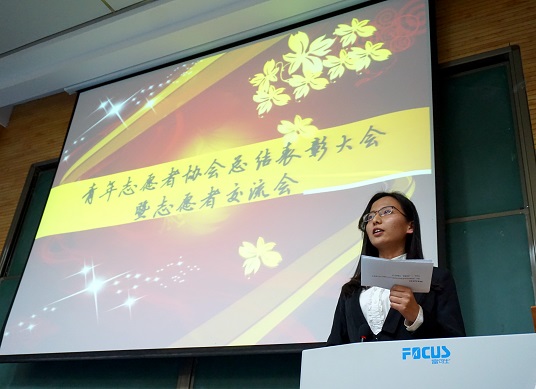 表彰大会由2016级中国语言文学班南奕帆主持,主持人细数19年来青协走过的路程——直至今日,青协志愿者累计服务时间超过22万小时,有效志愿服务人数超过200人。随后由青协主席刘曼丽进行工作总结,她回顾了去年青协所做的工作并对新学期即将举行的“博物馆进校园”等特色活动做了具体阐述。青协指导教师王欢在宣读《2016-2017年度第一学期青协评优获奖名单》后,优秀员工干部魏樊樊,瞿丹发言,她们用“热心”、“责任心”、“自信心”、“恒心”的理念鼓励队员秉持传统,继续前进,之后各队优秀志愿者代表进行发言。