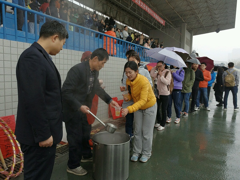 天下小雨,气温偏低,比赛依旧进行,公司后勤第一集团闻讯冒雨赶来,为师生们送上了一杯杯暖手暖心的姜汤驱寒,大家井然有序地排队领取姜汤,并对师傅们表达浓浓谢意。下午六点左右,运动会各类比赛项目顺利进行完毕。闭幕式上,党委副书记程蕾和团委书记洪海安等人给个人项目和团体项目优胜的同学们颁奖,并对他们表示祝贺。最后,党委副书记程蕾向运动员以及运动会的工作人员表示感谢,并希望全体同学加强体育锻炼,以饱满的精神状态投入到以后的学习和生活中,为未来打下基础。至此运动会圆满闭幕。