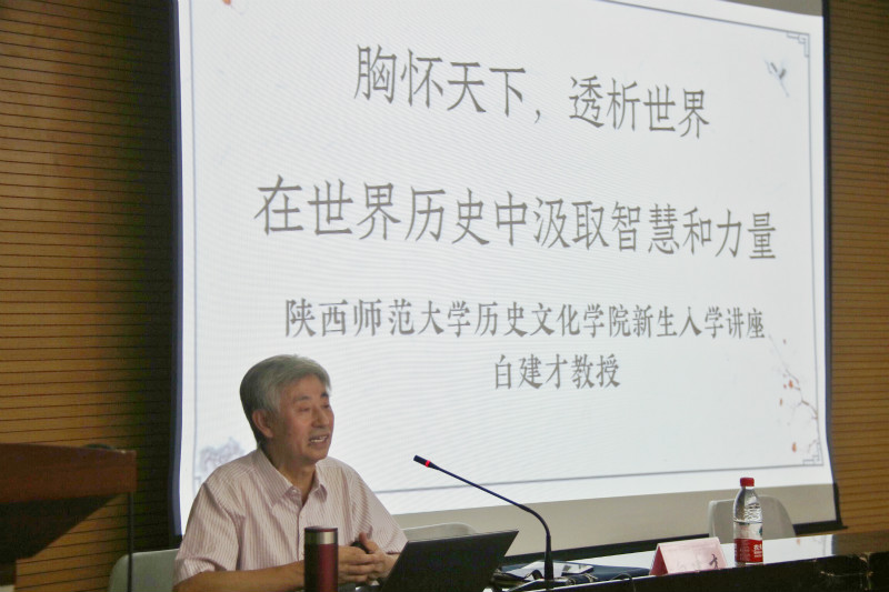 为帮助大一新生了解公司专业发展,进一步认识世界史学科专业。9月9日下午2点,,由公司博士生导师、世界史学科带头人白建才教授主讲的题目《胸怀天下,透析世界——在世界历史中汲取智慧和力量》,2018新生入学教育系列讲座第三讲在崇鋈楼三层归仁堂进行。公司党委副书记程蕾,18级辅导员鲁旭萌参加讲座,讲座由程蕾主持。