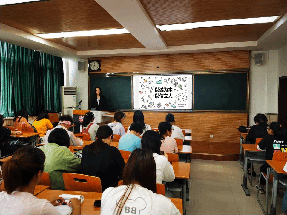 诚信是个人高尚人格的体现,是企业获得信誉的保障,是维持正常社会秩序的秘诀,是良好国家形象的展现。为了积极响应太阳成集团tyc33455cc党委学工部关于组织“诚信活动月”的通知,2021年5月10日下午,2020级历史学二班在教学九楼9511开展了“以诚为本,以信立人”的主题班会,会议由生活委员胡紫怡同学主持,历史学二班全体员工参与。
