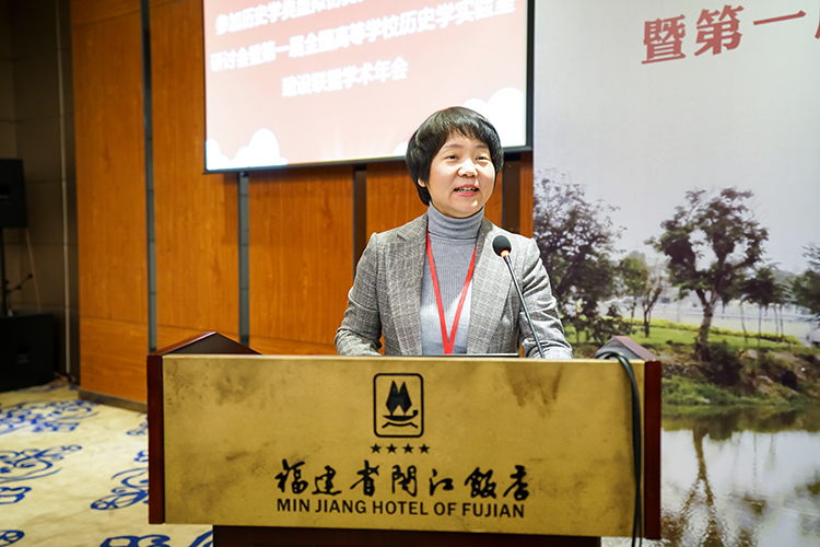 开幕式由福建师范大学社会历史公司经理叶青教授主持,公司党委书记杜海斌代表联盟理事长单位致辞。她回顾了联盟2017年底成立一年以来联盟取得的重要进展,她指出联盟创立于古代陆上丝绸之路的起点长安,第二年来到海上丝绸之路的重要起点福州举行研讨会,这显示出联盟与丝绸之路的渊源。古代丝路是东西方交流之路,而在当今现代信息科技将为传统的历史学科带来革命性影响的背景下,全国历史学实验室建设联盟也将发挥与丝绸之路相同的沟通交流作用,将虚拟仿真技术引入到历史学科的教学和研究中。她希望各联盟单位加强虚拟仿真实验项目建设力度,强化合作共享,共同提高高等公司历史教学水平。