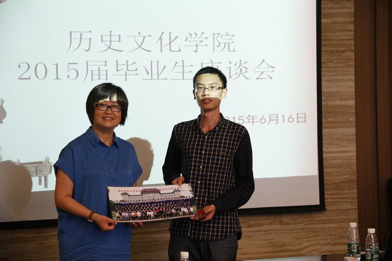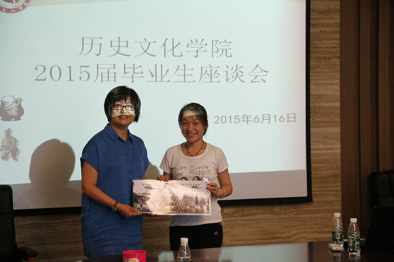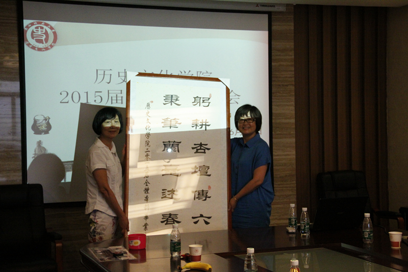 最后,党委书记丁虹为毕业生代表颁发院徽及毕业照,2015届本科毕业生为公司赠送了由张彧主创、黄晓娜书写的书法作品。丁虹书记对本次大会作了总结发言:祝愿我们的毕业生能够健康生活,工作顺利。本次毕业生座谈会圆满结束。