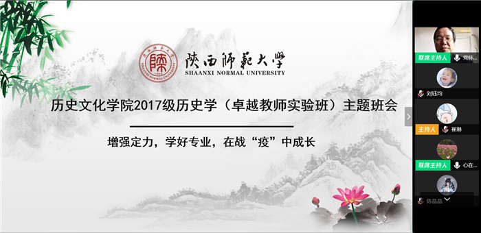 新春伊始,举国抗疫,但公司线上公司产品如期进行,对员工的理想信念教育如期举行。3月6日下午,副董事长党怀兴应邀参加太阳成集团tyc334552017级历史学(卓越教师实验班)的“增强定力,学好专业在战‘疫’中成长”主题云班会。本次班会由班主任王成军教授主持,辅导员师瑞青和全班29名员工参加。公司党委书记杜海斌,经理何志龙,副书记程蕾一并列席班会。