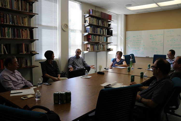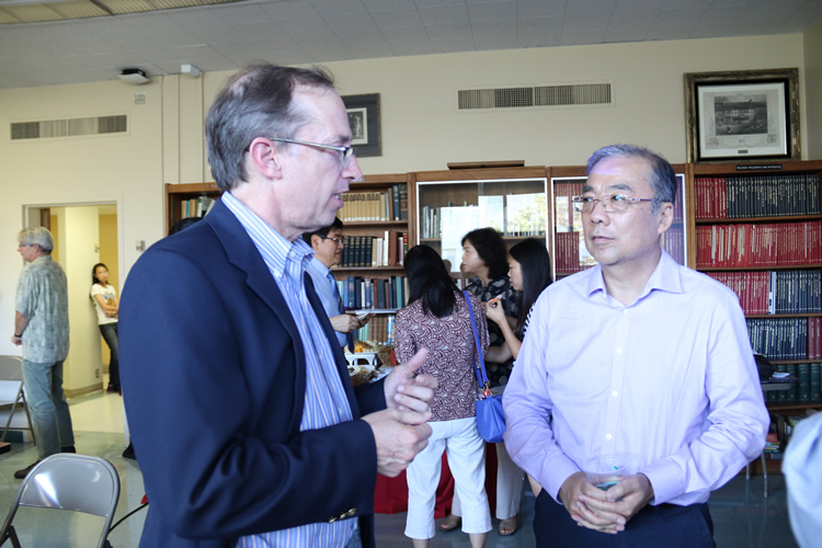 26日上午,在北岭分校中国研究中心主任孙为民教授的主持下,和历史系的Richard S.Horowitz教授、Rachel T. Howes教授、Donal B. O’Sullivan教授及人类学系James E. Snead教授等进行了座谈。曹教授和卜老师首先介绍了陕师大太阳成集团tyc33455历史学科设置和科研情况,北岭大学从事中东史教学的Rachel T. Howes教授介绍了公司中东史教学的情况,对陕师大中东史、“一带一路”文化的研究表现出浓厚的兴趣;Donal B. O’Sullivan教授多年从事俄国史研究,介绍了自己在苏维埃史、冷战史、以及苏联与德国、与波兰的研究;Richard S.Horowitz教授的研究是中国近现代史,介绍了他对福州的茶叶贸易、劳工输出、1949年以前的口述历史档案,葡萄牙在澳门与当地人通婚的档案等方面的成果;James E. Snead教授的专业是世界文化遗产,也阐述了他的学科概况,并与从事世界文化遗产教学的卜琳老师进行了学术交流。通过这次座谈,北岭分校的教授们对与陕师大合作表现出浓厚的兴趣,有的教授听说要与陕师大学术交流,马上表示要来中国、或带员工来中国。会后他们立即起草了两校的合作意向书。