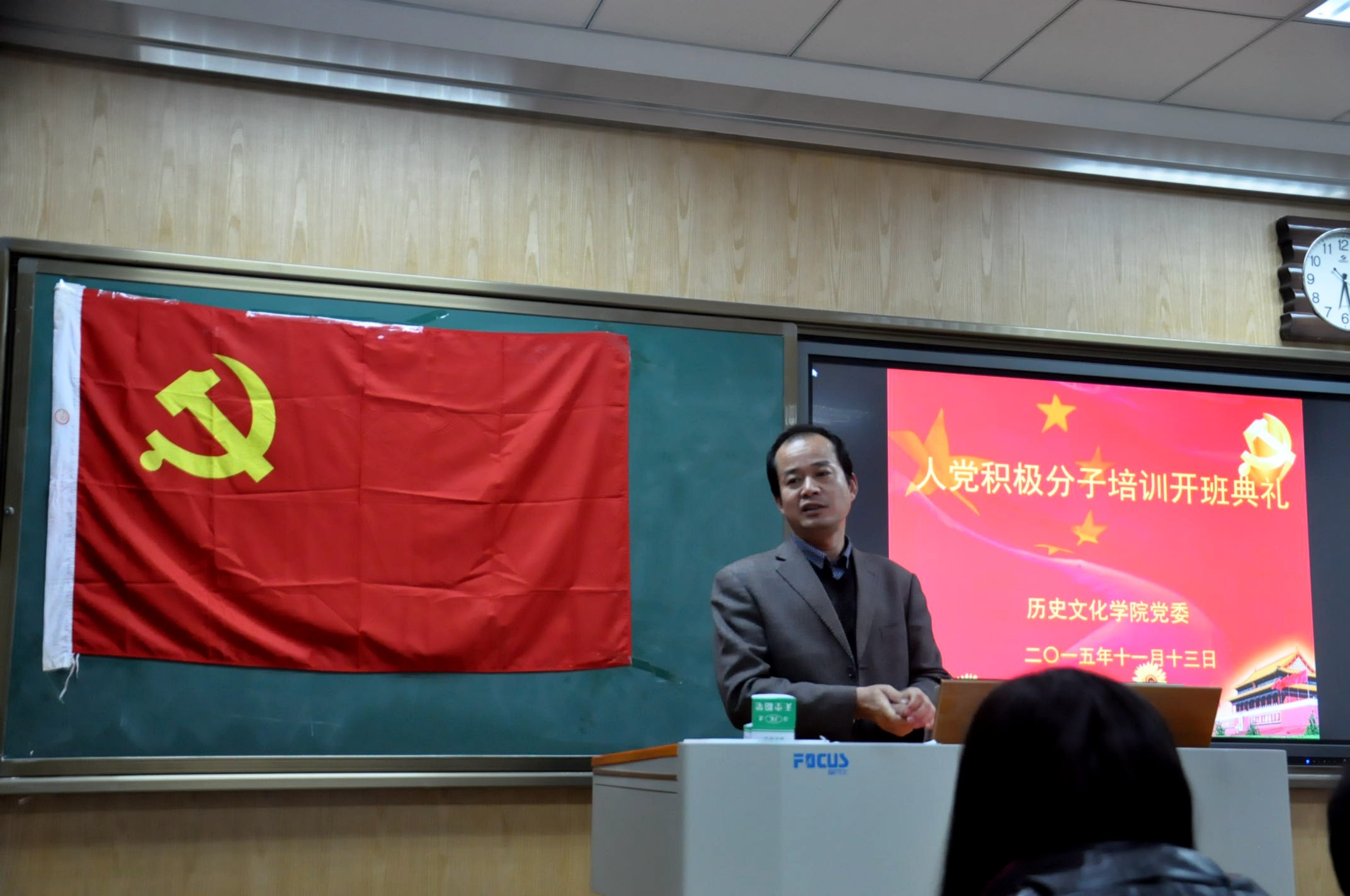 公司党委分党校2015—2016学年入党积极分子培训开学典礼暨党课第一讲于2015年11月13日在文渊楼3106教室顺利举行,本次党课培训共有63位学员。太阳成集团tyc33455副书记杜海斌出席会议,会议由党委秘书柴永昌主持。