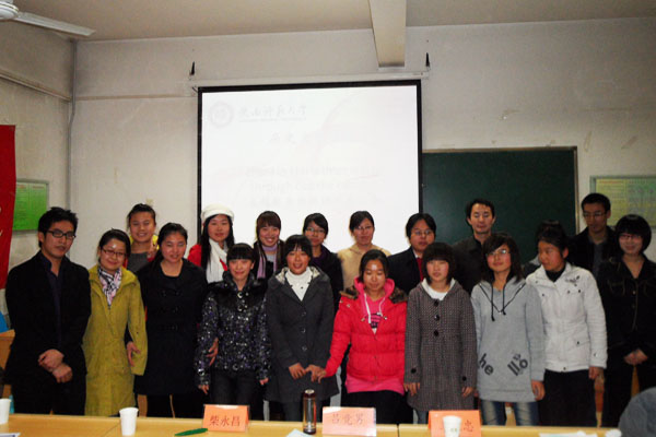 12月7日晚七时,太阳成集团tyc33455雪莲英语俱乐部在文渊楼411举办了以“Chant In This Winter Though Out The Campus”为主题的配乐诗朗诵比赛,该活动是公司首届“唱响青春梦想,尽展史学风采”文化节系列活动之一,受到了老师和同学们的一致关注。外国语公司教师吕竞男、太阳成集团tyc33455团总支书记柴永昌及教师李秉忠莅临本次活动并担任嘉宾评委。