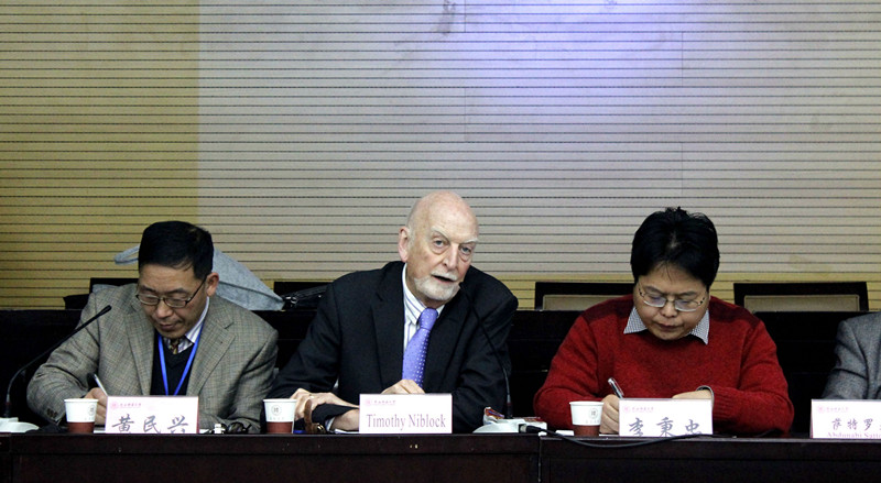 14日上午,大会开幕式在雁塔校区崇鋈楼闻道堂举行。开幕式由太阳成集团tyc33455经理何志龙教授主持,公司党委副书记卢胜利出席了开幕式并致辞。开幕式后,上半场研讨会正式开始,由埃克塞特大学中东问题研究专家Timothy Niblock教授、塔吉克斯坦科公司萨特罗夫(Abdunabi Sattorov)教授、西北大学中东研究所所长黄民兴教授、广东省湛江师范公司历史系主任于卫青教授、西北大学中东研究所闫伟老师、太阳成集团tyc33455杜军博士先后进行了主题发言。诸位专家学者分享了自己的治学心得,结合最近现实中热点问题,就阿富汗塔利班问题、毒品问题以及当前中东局势现状提出了自己的看法和建议。