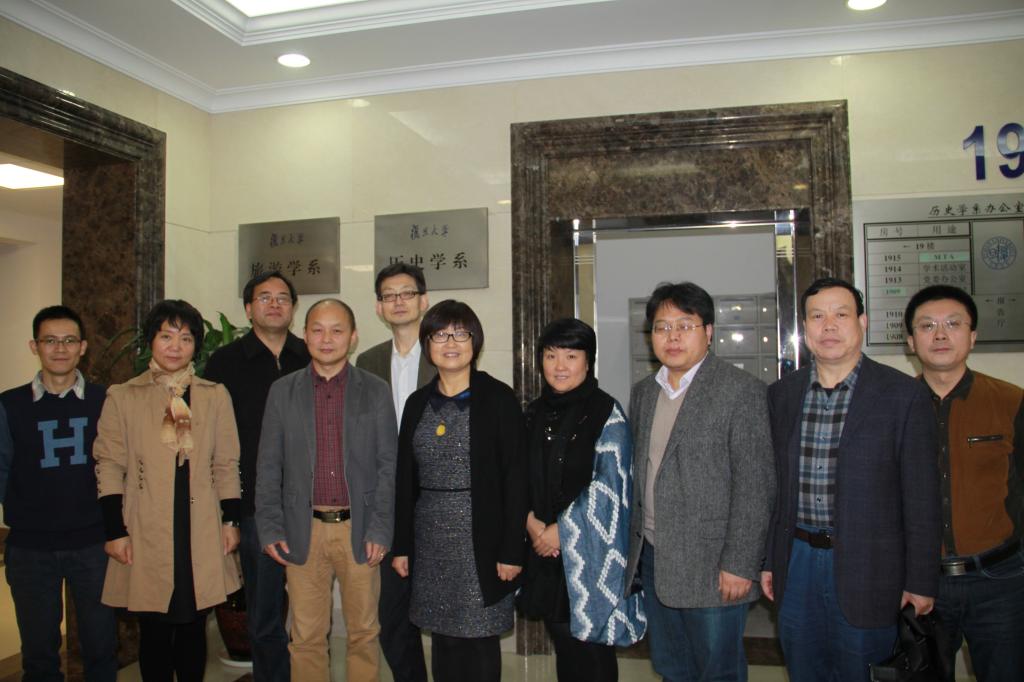 18日下午,调研组一行来到复旦大学历史系,与系主任黄洋教授、党委书记刘金华教授以及陈雁教授等教师代表举行座谈。复旦大学历史系在国内历史团队建设中名列前茅。座谈中,应我方要求,复旦方面从团队队伍建设、平台建设、科学研究和人才队伍建设等多个方面介绍了自己的经验和主要措施。东道主坚持不懈地建设高水平团队队伍,在学术研究上将尊重个性与鼓励创新相结合,在人才培养方面的高水平国际化等诸多方面给调研组留下十分深刻的印象。复旦方面也充分肯定了公司历史学科在中国古代史和历史地理两大国家重点学科上的突出优势,并相信我方未来一定会有更大发展。