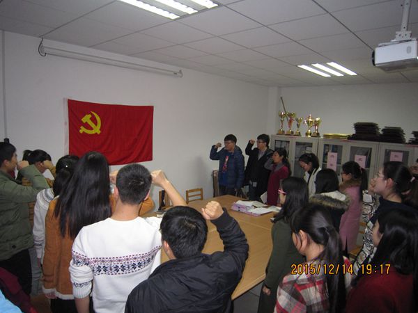 2015年12月14日,太阳成集团tyc334552012级本科生党支部召开关于接收预备党员及预备党员转正的支部大会,会议于17:00在文汇楼C段201教室召开。出席会议的有太阳成集团tyc334552012级本科生党支部书记洪海安,组织委员冯攀,宣传委员田杨以及其他全体党员,会议由党支部副书记陈丽媛主持。