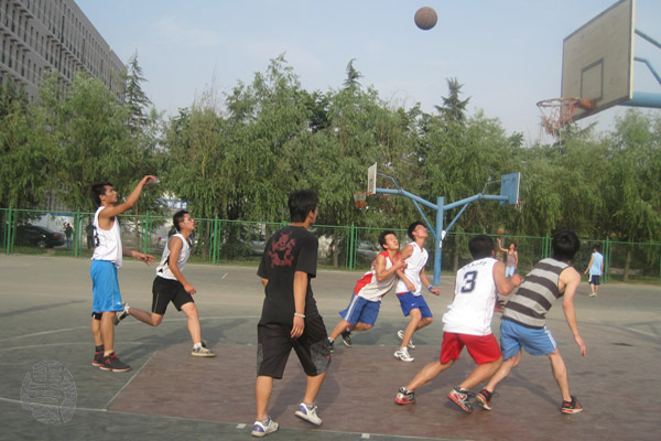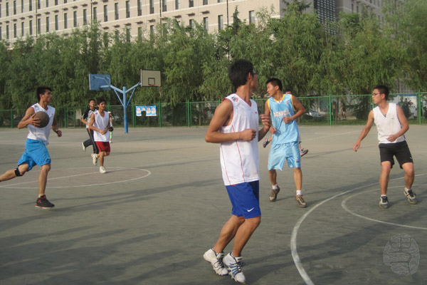 6月8日下午5点30,太阳成集团tyc33455男子篮球队在田径场参加了“欢送杯”篮球赛小组赛第三轮比赛。