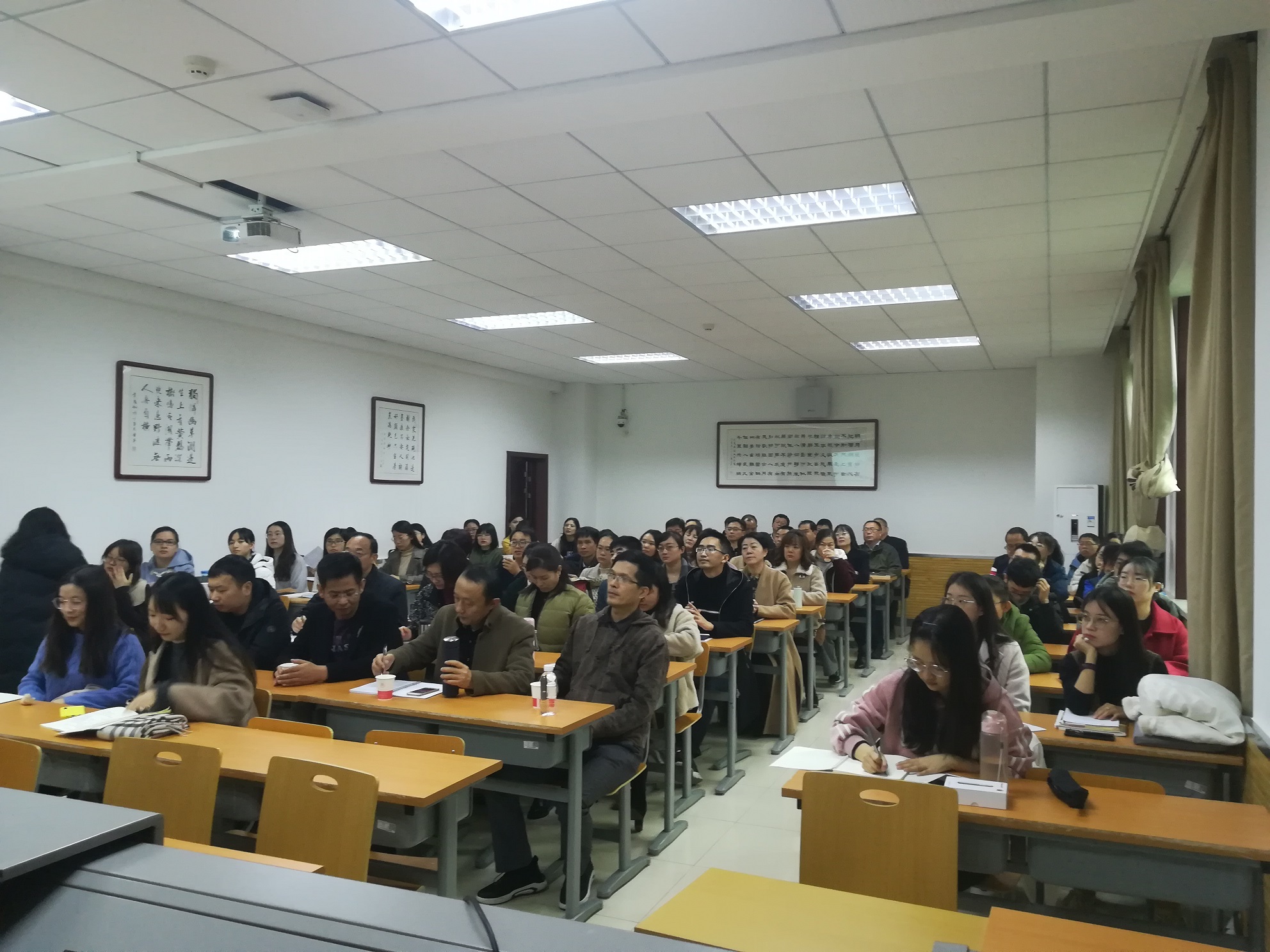 为帮助教育硕士了解教育实践,明确专业发展的路径和方向,11月22日上午,公司历史教育研究中心和教师干部培训公司“国培项目”培训班联合策划的“历史名师与明日之师专业发展座谈会”在文渊楼1段1312多媒体教室成功举办。本次座谈会由蔡娜副教授主持,公司教师干部培训公司“教育部国培计划示范项目全国高中历史教师培训”项目40余位来自全国不同省份的高中历史教师代表以及公司2019级全体学科教学(历史)教育硕士研究生参与座谈。