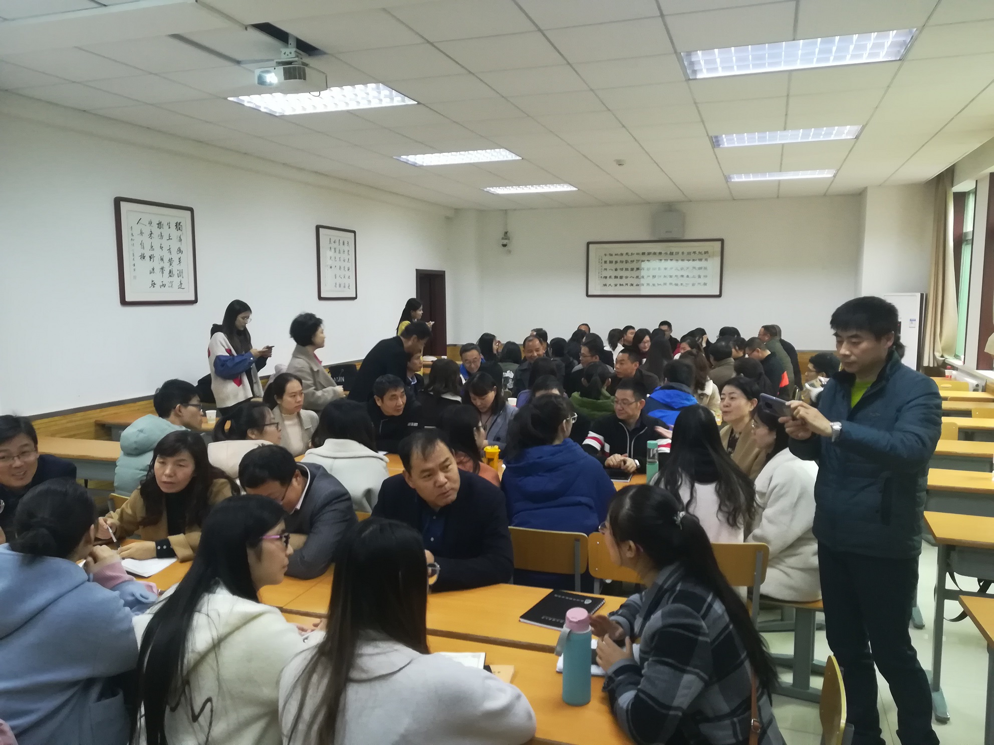 在此基础上,国培班学员老师与硕士研究生们分为5个小组进行面对面直接沟通,硕士研究生们踊跃提出问题,教师代表们热情分享自己长期在一线教学的经验,解答同学疑问。