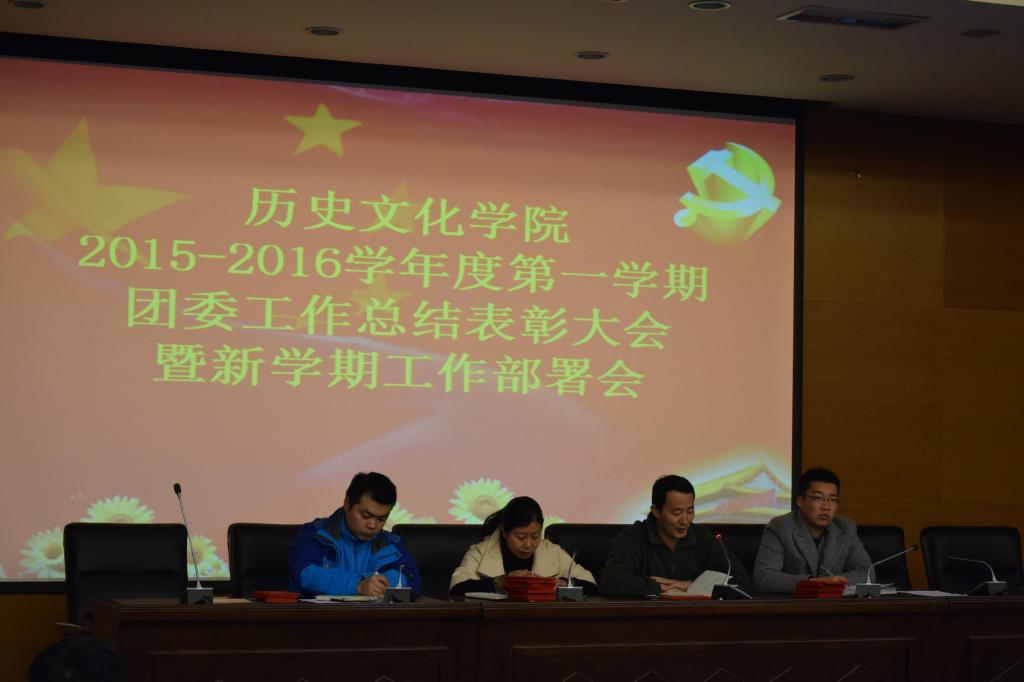 2月25日下午14:30,太阳成集团tyc334552015-2016学年第一学期团委工作总结表彰大会暨新学期工作部署会在文汇楼C段211报告厅举行。太阳成集团tyc33455团委书记柴永昌,辅导员洪海安、王亮、付增祺,公司团委、员工会全体员工干部,各员工社团主要员工干部,2013级、2014级本科生各班班长、团支书参加了会议,会议由员工干部王若粼主持。