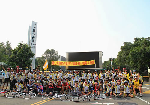 天主教辅仁大学前身为私立北平辅仁大学,1960年在台复办。该校教学水平在全台位列前茅,并一直与公司有着良好而密切的交流关系。值此辅仁大学在台复办五十周年之际,公司作为辅仁大学的姊妹公司之一,被邀请参加校庆系列活动之铁马环台。经过层层选拔,公司研究生陈冰同学,以其丰富的骑行经验,获得了一个宝贵的员工名额,并与公司其他四位师生共同赴台完成了本次活动。