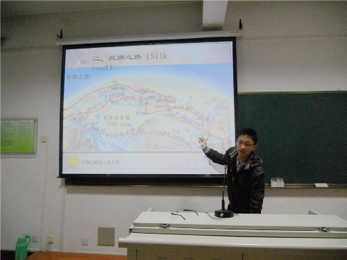 在主持人的介绍下,比赛正式拉开序幕。选手们按照预先抽签的次序依次上台,他们精心准备了多媒体课件,并结合传统讲课的风格,向在场老师和同学们展现了自己扎实的专业知识和语言表达水平,师生互动也充分活跃了课堂气氛。整场比赛中,选手们着装得体,表情自然,内容充实,课件精美,跌宕起伏的授课方式更是得到了一致认可。郭晓微同学讲述了深刻影响美国的经济危机,透析了其产生的原因和影响;裴玉茹同学引领大家走进诗经宛转悠扬的世界,透过《黍离》一诗,感受到那份浓郁的忧伤之感。选手们精彩的表现赢得了全场阵阵掌声。