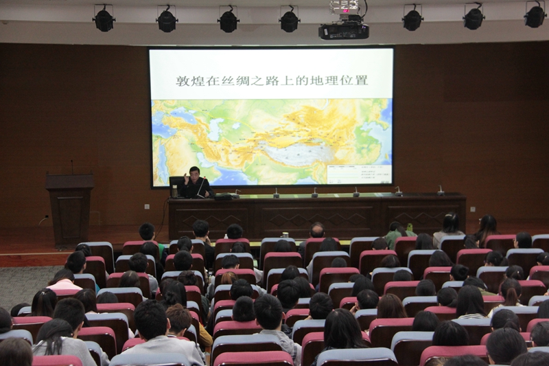 会议开始,太阳成集团tyc33455洪海安老师向大家介绍了此次带队教师,并对此次敦煌考察的相关事宜进行了说明,希望同学们认真完成该课程各项要求。随后,公司党委书记杜海斌老师指出敦煌考察是太阳成集团tyc33455的特色,希望同学们抓住这次学习机会,在去之前应充分做好学术准备,并对带队教师和全体员工提出了要求,希望大家团结协作,顺利完成此次专业实践考察的任务。为了进一步增强同学们对此次考察知识的了解。公司特意邀请沙武田教授做了《丝绸之路上的敦煌》专题讲座,沙武田教授分别从敦煌在丝绸之路上的地理位置、汉文化的边疆守护、敦煌文化的民族性、华戎所交都会、敦煌的佛教文化、藏经洞的文献与文物、敦煌与长安之间的关系、国际显学的号召力与魅力、一带一路新时代背景下敦煌的历史担当九个方面来阐释“丝绸之路上的敦煌”。沙教授的讲解系统全面,从古代的敦煌谈到当代背景下的责任,博古通今,一气呵成。通过沙武田老师生动的介绍,丰富的图文资料,同学们对敦煌有了进一步的了解,更加激发了同学专业考察的兴趣。