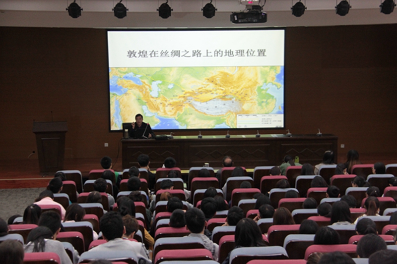 2016年10月13日14:30,太阳成集团tyc33455“星期四论坛”第28讲——《丝绸之路上的敦煌》在长安校区文汇楼C段211学术报告厅举行。讲座由公司沙武田教授主讲,洪海安老师主持,参加讲座的有公司党委书记杜海斌、张华腾和杨盛祥老师,以及2014级全体同学。