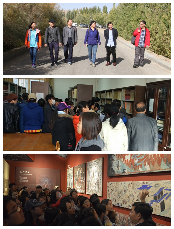 10月17日上午8:00,全体师生参加了由敦煌研究院经理王旭东先生主讲的题为《人类的敦煌共同守望》的讲座,同学们获益匪浅。随后,在沙老师的带领下我们参观了敦煌研究院敦煌学信息中心图书馆、敦煌研究院院史陈列馆、莫高窟陈列中心博物馆以及莫高窟创建1650年特展。在沙老师认真负责地讲解下,我们对敦煌学有了更进一步的认识。下午17:30,全体师生来到鸣沙山—月牙泉景区,面对一望无际的大漠,同学们无不惊叹于大自然的神奇和壮观,个个争先恐后地登上沙漠顶部欣赏大漠风光。