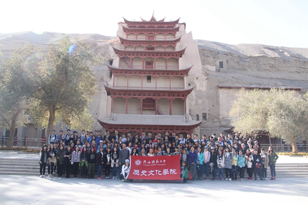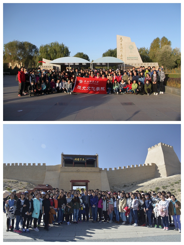 10月15日清晨,带队教师及2014级全体本科生从西安出发,于16日凌晨5点50分抵达嘉峪关火车站,稍作休息后便前往嘉峪关关城进行参观。通过对嘉峪关关城的参观,同学们感受到了天下第一雄关的气势。接下来,便去往悬壁长城,陡峭的山体、容易脱落的崖体、猎猎山风都为同学们的攀爬增加了难度,同时大家不禁对往昔在此驻扎的将士肃然起敬。下午13点,全体师生驱车前往魏晋砖壁画墓进行参观,在讲解员的介绍下,同学们对于魏晋时期当地的政治、经济和文化习俗有了一定的了解。随后,我们去往“天下第一墩”——嘉峪关西长城最南端的一座墩台、明代万里长城最西端的一座墩台,也是长城沿线建筑规模最壮观、保存最完整的一座古代军事关隘。下午18:00结束在嘉峪关参观后,全体师生驱车前往本次考察的重要目的地——敦煌,晚上22:30全体师生安全抵达敦煌市。