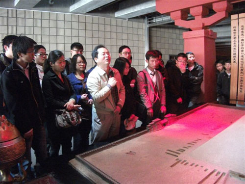 随后,同学们在老师的带领下依次参观了汉阳陵外藏坑遗址保护展示厅与考古陈列馆,朱君孝老师详细解说了阳陵的考古发掘过程及相关的考古知识,介绍了汉代陶俑的特点、陪葬墓室的规范、战车的形制等,同学们也踊跃提问,对汉景帝阳陵陪葬墓有了更进一步的认识。同学们在展厅内别具特色的玻璃地板上行走,俯瞰陪葬坑的考古发掘原貌,并参观了陶俑、瓦当、铜镜、车马、生活起居器物等出土文物,深切领略了汉代墓葬文化的历史厚重感与出土文物的惊人的传世风采。下午14时30分,考察团全体成员顺利完成考察活动,乘车返回公司。