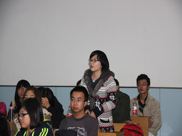 步雁女士对礼仪的重要性以及如何达到基本的仪容仪态要求进行了深入浅出的讲解。接着,她结合自身经历详细介绍了讲解中应注意的技能技巧。最后,步雁女士还以自己多年招聘志愿者的经验来指导同学们如何顺利完成应聘,给应聘单位留下良好印象,使同学们受益匪浅。
