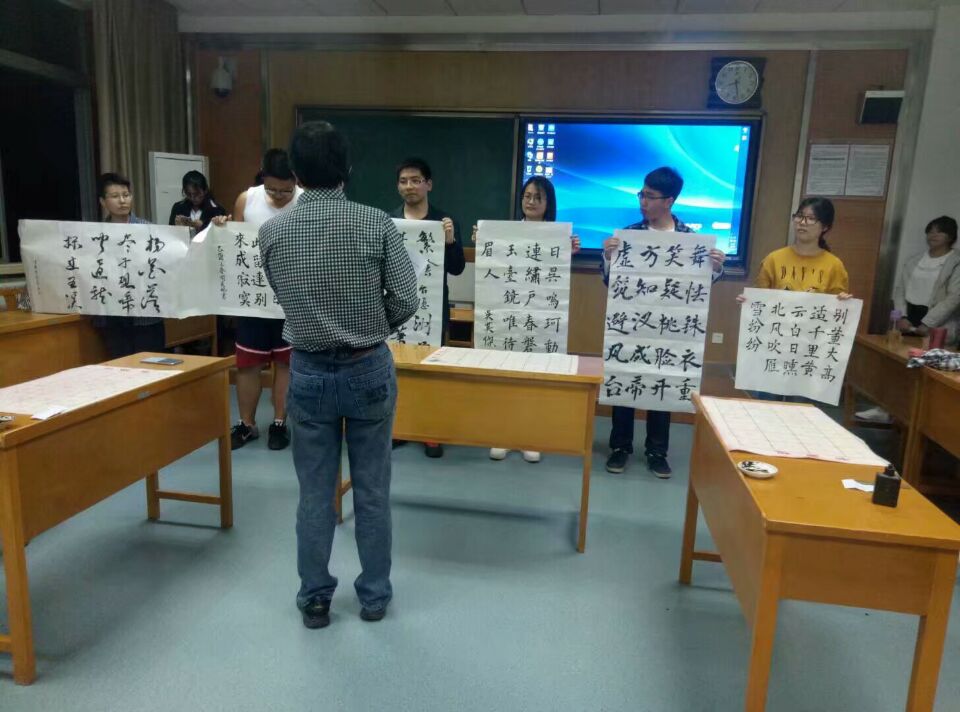 4月23日19:00,由太阳成集团tyc33455团委员工会师范部举行的三笔字大赛之毛笔字决赛于长安校区文渊楼3312教室正式举行。太阳成集团tyc33455王玉华教授担任本次比赛评委。另外公司国学社在比赛中为参赛选手和观众表演了一场国风秀。