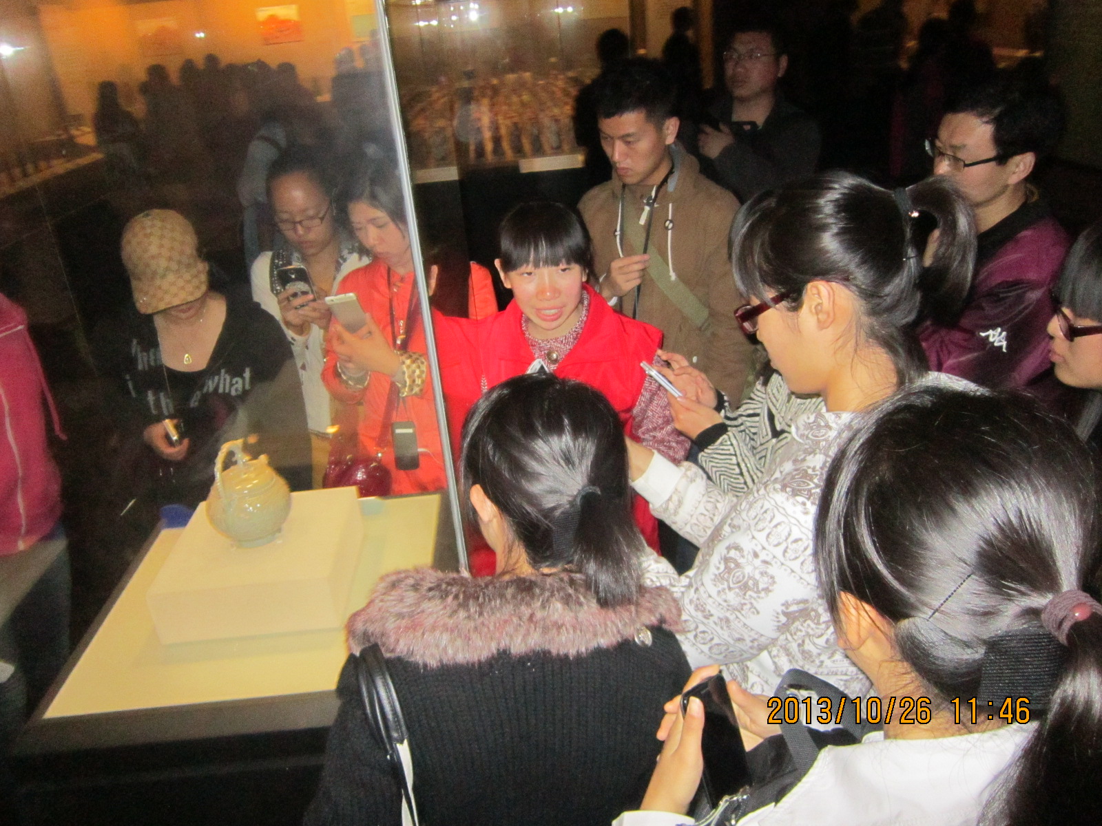 26日,公司党委副书记杜海斌老师、理科部贾老师和王老师、文科部杨老师分别于上、下午分别带领着公司理科部、文科部2013级的党员进入陕西历史博物馆,待票务准备完毕,经过安检后,同学们有顺序的进博物馆中,“青协”之前安排妥当的师大志愿者们早早的在馆中等候老师和同学们,由于人数较多,把同学们分为每十人由一位志愿者带领参观。分组完毕后,同学们开始按照第一二三展厅的顺序进入馆中参观。在讲解的过程中公司“青协”志愿者拿出了平时为游客讲解的热情和耐心,为我们公司的小党员们一一介绍展现在展厅的几千年前的文物,展现了我们祖先的聪明与智慧,显现出中华文明文化的博大精深,在讲解的过程中,我们的志愿者风趣幽默地把西周牛尊称为陕博“最可爱的青铜器”,在讲到第三展厅唐代贵族妇女妆容的时候,同学们都对古代女性的审美非常感兴趣,对妇女的穿戴前卫潮流甚是大开眼界。