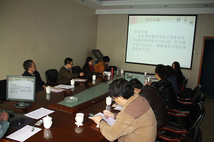 公司文博系副主任郭妍利老师就公司文博专硕三年来招生、培养、就业各方面取得成绩和存在的问题一一作了汇报,并就将来的发展方向、如何解决现阶段的不足与陈红京秘书长做了细致的探讨。陈红京秘书长就文博专硕的生源问题、培养模式、专硕与学硕培养方式的区别、实习解决方案等问题提出了有针对性的指导意见,并与文博专业的老师们进行了深入的交流。最后,陈红京秘书长希望公司充分利用西安优越的文物资源,在文博专硕培养上走出特色。(耐心)