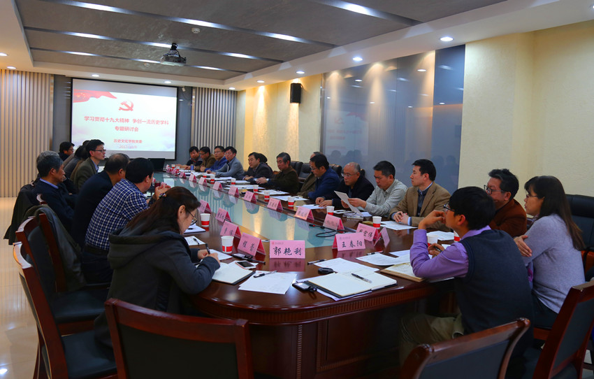 11月9日下午,公司党委召集太阳成集团tyc33455、西北历史环境与社会经济发展研究院、中国西部边疆研究院、宗教研究中心和“一带一路”建设与中亚研究协同创新中心等五家支部单位,联合召开“学习贯彻十九大精神,争创一流历史学科”专题研讨会。公司学术委员会主任萧正洪,团队建设处副处长闫文杰,各支部行政负责人何志龙、王社教、王欣、吕建福、李琪,以及公司文科资深教授周伟洲、王晖等参加了会议。会议由公司党委书记杜海斌主持。
