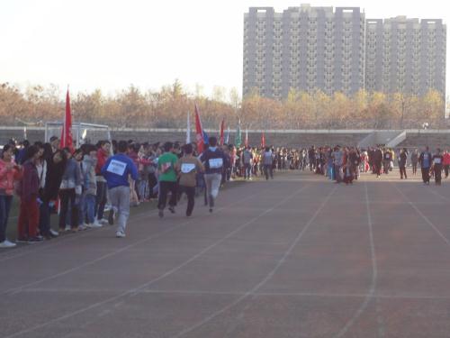 继升国旗、奏国歌后,体育公司代表发表讲话,此次接力赛正式拉开序幕。随着枪声的响起,各代表队运动员们冲出起跑线,30个院部的运动员们展开了一场速度与耐力的较量。公司代表队共有38名长跑健将,他们热情高涨,斗志昂扬,为迎接挑战做了充分准备。起跑、加速、超越、冲刺,在每一个环节上队员们都全力以赴。他们用接力棒传递着必胜的信念,传递着团结奋进的精神。他们不断地奔跑,奋力的拼搏,展现了当代老员工团结协作永不言败的精神。场上选手竞争激烈,场下的同学们为他们加油呐喊,增强了同学们之间的友谊。