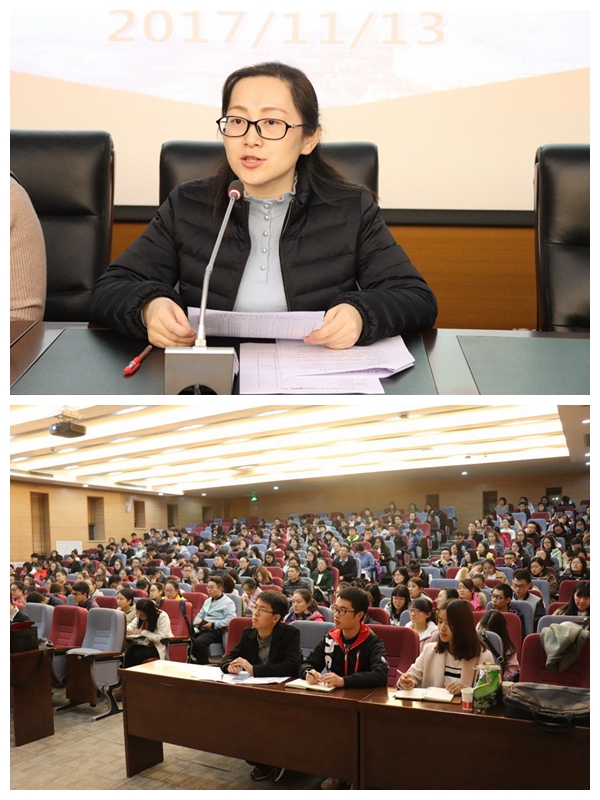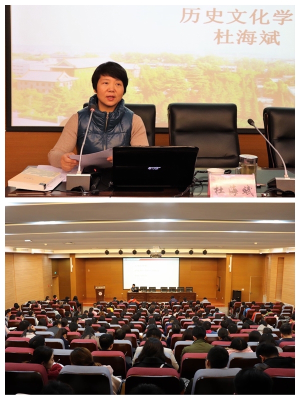 杜海斌老师的讲座从“人类的理想”、“中国共产党的历史使命”、“责任与担当”三个方面展开详细论述。她从古今中外人类对美好社会的构想阐释人类理想,列举《桃花源记》、《礼记▪礼运》、《大同书》、《乌托邦》以及宗教中的天堂等人类对未来社会的美丽构想。以准确、诙谐的语言带领同学们领略古今中外先哲们对美好社会的期盼,激发同学们对理想社会的向往和追求。讲座第二部分,杜老师娓娓道来20世纪初中国的政治、经济、文化状况,对当时中国的新型知识分子做出积极肯定的评价。通过容闳教育救国、梁漱溟和晏阳初等人投身乡村建设的理想和实践,指出中国共产党的成立的历史背景和使命。讲座第三部分,杜老师为同学们讲解了中共一大到三大的重要纲领,他们在历史上的重要意义,以详实的历史数据让同学们切身感受到党成立初期的状况。此外,她还对党的十五大、十六大、十七大、十八大和十九大报告做重点解读,提纲挈领地概括我们党目前建设中国特色社会主义,全面建成小康社会的历史渊源和现实意义。
