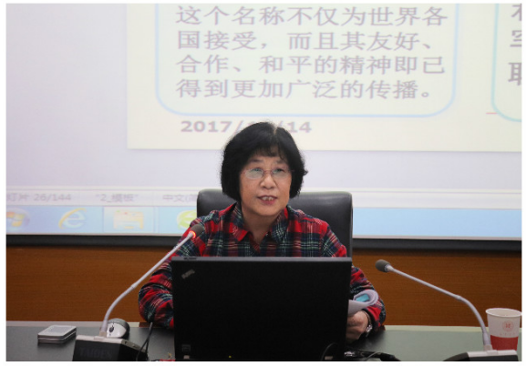 报告中,李琪教授从“‘一带一路’建构的历史要素与时代内涵”、“‘一带一路’中国地缘战略环境与总体选择”、“以地缘经济关系为基点:推进区域经济合作发展新模式”、“‘一带一路’与全球化背景下的地区安全”、“文明包容互鉴:教育交流合作,助力民心相通。”五个角度论述“一带一路”与人类命运共同体的关系。在第一部分里,她回顾了古代丝绸之路的名称来源,历史过程与历史意义。李琪教授通过历史回顾与历史对比,以简明易懂的语言向大家介绍“一带一路”的谋略思想、意涵、定位以及特征。第二部分,李琪教授运用历史的方法重点讲述了“一带一路”的地缘战略环境与新格局,并对大博弈的历史渊源进行了深入扩展,进一步证明我国在“一带一路”中的责任与思想。第三部分,李琪教授细数了古代区域经济合作模式的历史阶段,详细阐述“一带一路”中地域经济发展状况与发展模式,以充分的论据证明“一带一路”的利好态势。第四部分,她通过十九大报告解释当今全球的格局形势与我国,强调地区安全对“一带一路”发展的重要性,表达了和平发展,互助和谐是我们追求的主题。在第五部分,李琪教授强调人文文化交流与合作对“一带一路”战略思想的重要意义,并运用国际文化教育交流的实例,说明文明包容互鉴的重要性,鼓励所有的有志青年学子为我们国家的“一带一路”建设贡献自己的力量。