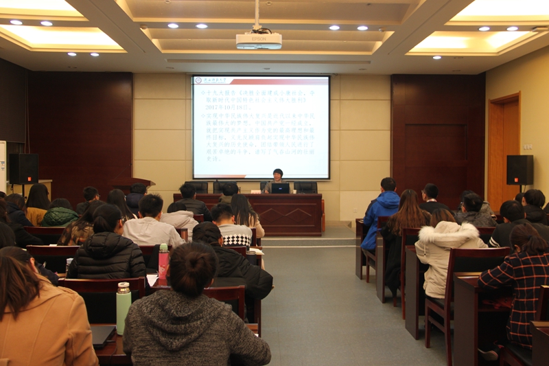 会议分两个阶段,第一阶段,首先由党委秘书洪海安对分组以及党课培训注意事项进行说明。接着有党委副书记程蕾对开展党课培训的目的,并对入党积极分子提出了几点要求,希望入党积极分子要树立好模范带头作用,将理论学习和实践相结合,将个人理想同师大梦、中国梦相结合。最后党委副书记程蕾宣布党课开班。
