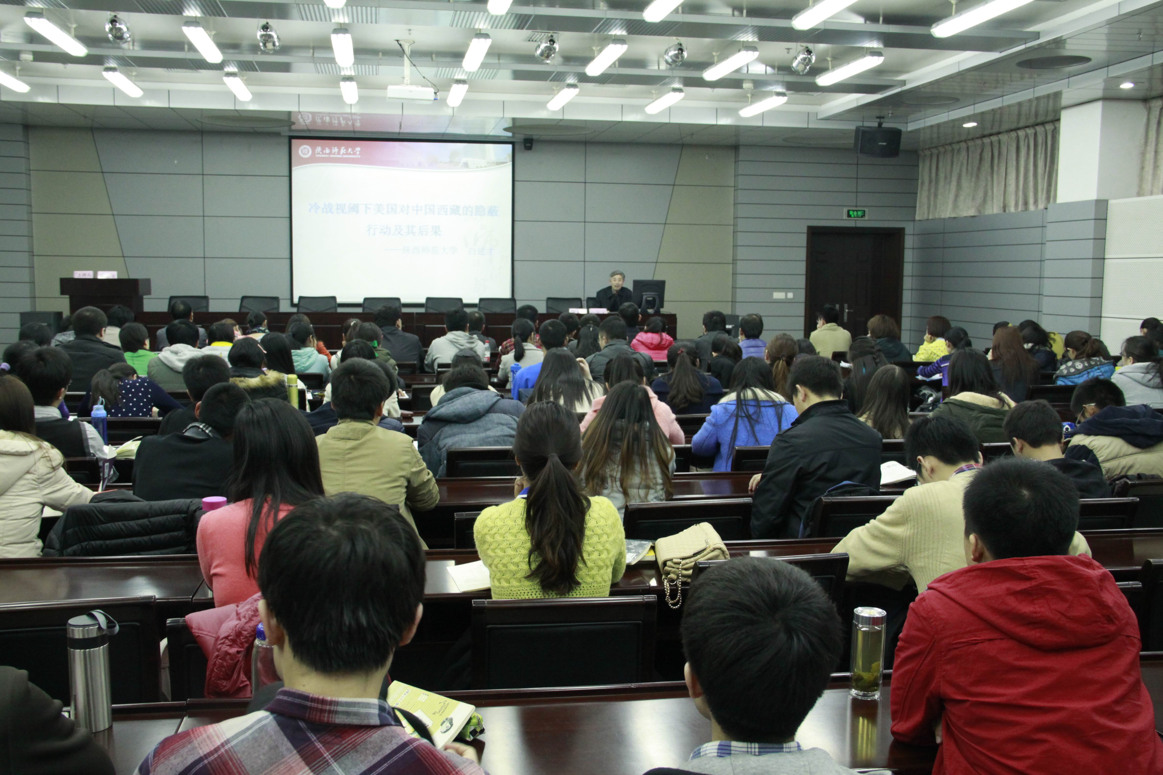 报告开始前,何志龙经理简要介绍了白建才教授的学术、科研和对外交流经历。报告正式开始,白建才教授首先从前段时间美国总统奥巴马会见达赖喇嘛引入,讲到了从冷战时期开始的美国对西藏的政策和活动——隐蔽行动(Covert Action);接着,白建才教授提到,在冷战时期,美国对中国实施隐蔽行动具有持续时间长、以隐蔽政治战和准军事行动为主,辅之以隐蔽的宣传战等特点。除此之外,美国还与印度的情报机构进行密切合作,通过联合国大会等国际组织力图促使西藏问题国际化。白教授运用了大量的数字,直观地为我们展现了美国对达赖集团提供的活动经费数额之大,以支持其在纽约、日内瓦等地的办事处的正常运行,其目标是利用西藏问题遏制中国,给中国的崛起制造障碍,以维护其超级大国的地位。在最后的互动环节,同学们纷纷向白建才教授提问,气氛热烈。