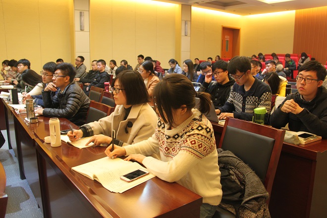 【集贤讲堂】2017年12月10日消息(撰稿:杨正艳;拍摄:张诗曼)12月10日晚,集贤讲座第228讲在长安校区文汇楼A区一层报告厅举行。著名学者、东北师范大学副董事长韩东育教授做了题为《前近代“宗藩体系”解体的隐秘逻辑——对〈中日修好条规的再认识〉》的讲座。韩东育教授主要从事日本史、东亚思想史和东亚国际关系史等领域的研究。本次讲座由经理何志龙教授主持,公司教师王成军、李大伟、王春阳和公司研究生参加了讲座。