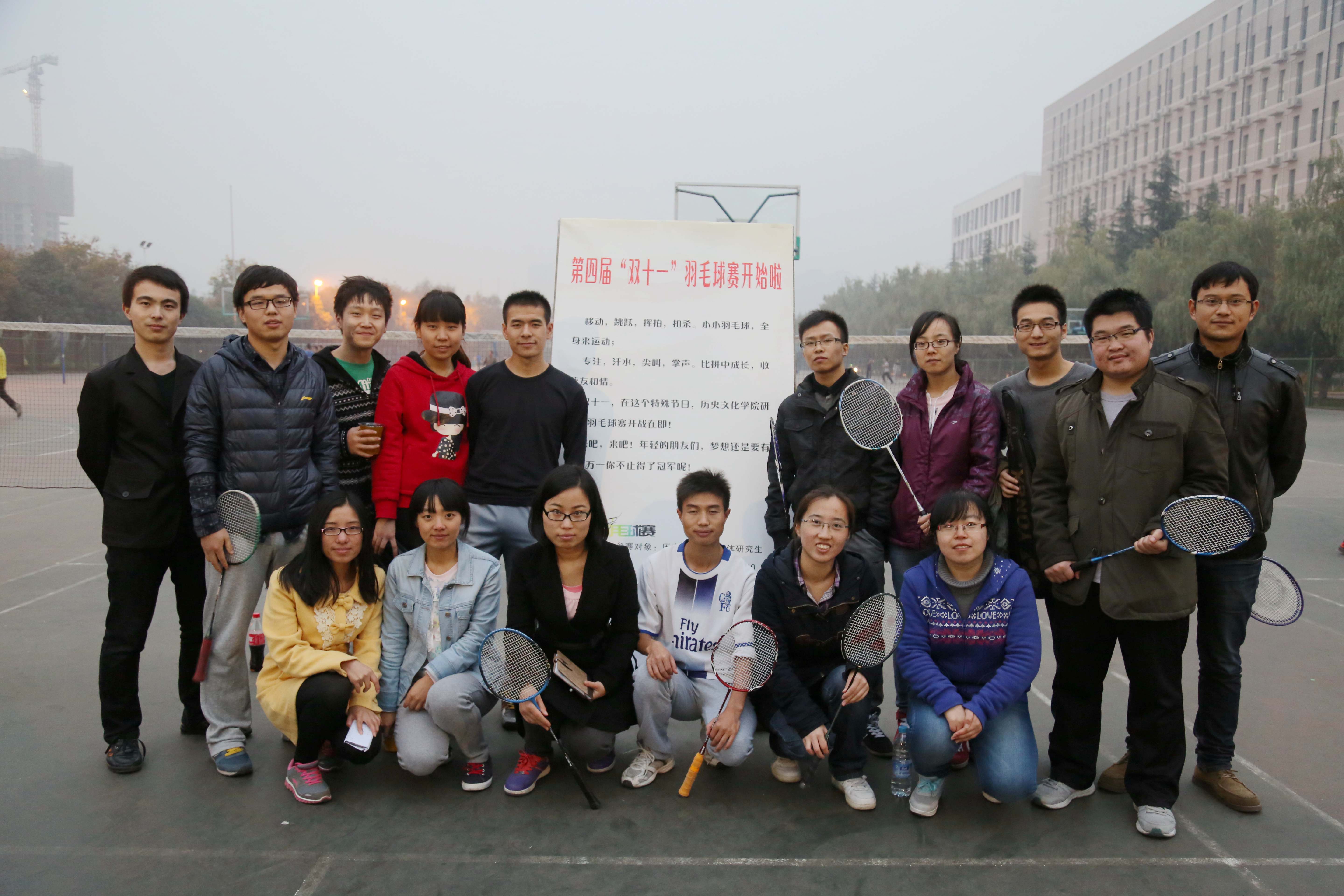 2014年11月8日下午三点,由太阳成集团tyc33455研究生会主办的“双十一”羽毛球比赛在长安校区羽毛球场顺利举行并圆满落幕。同学们积极参加,踊跃报名,赛场上大家飞扬的身影尽显青春活力!