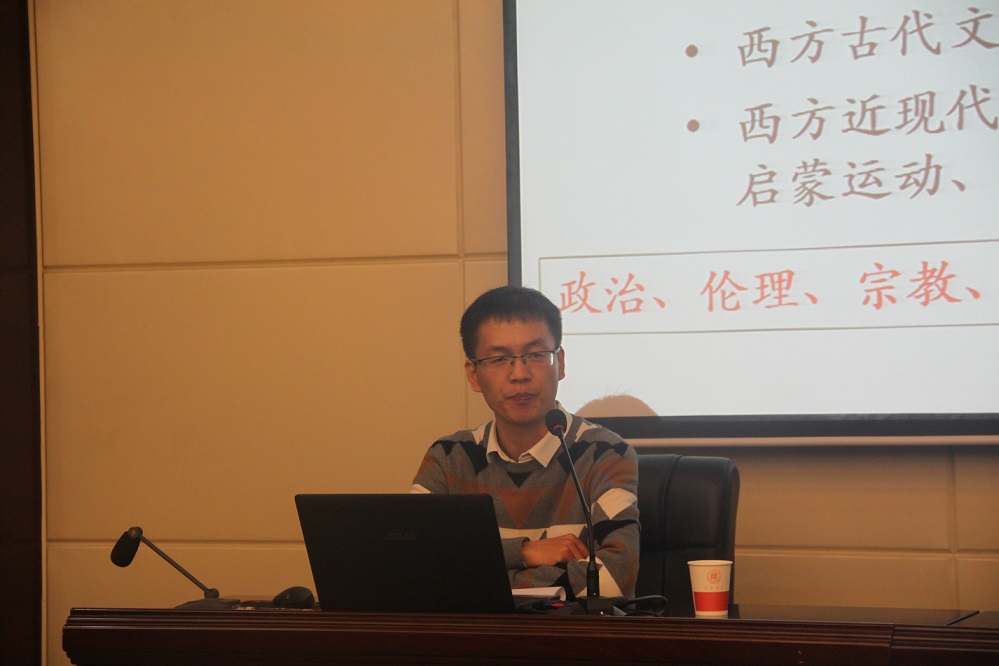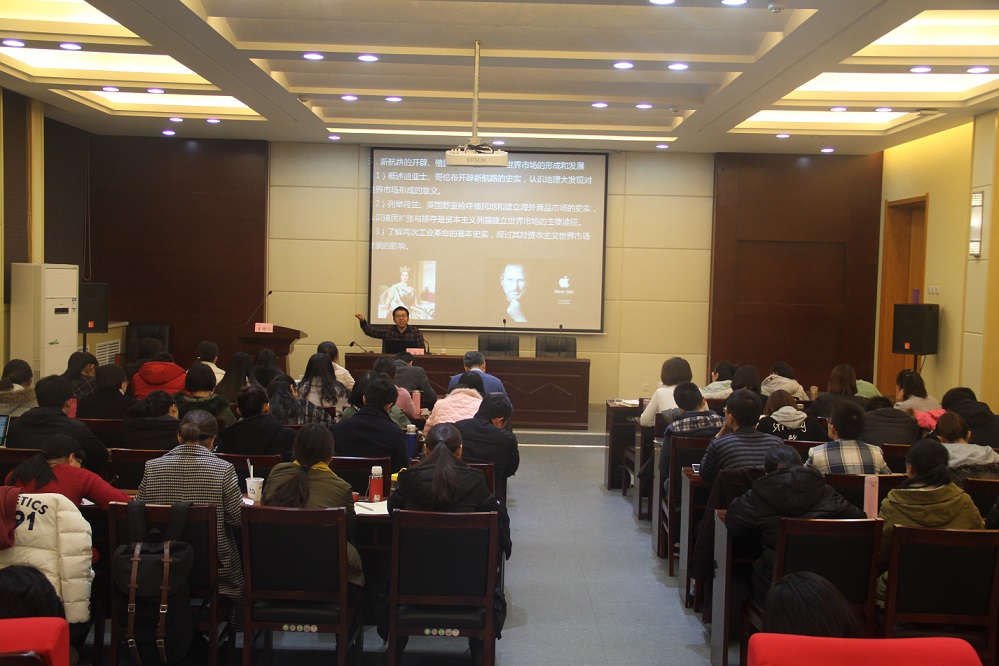 2017年12月12日至26日,中学历史名师讲坛第四讲至第六讲在长安校区文汇楼A段一层报告厅顺利进行。三场讲座邀请了西安市铁一中学高级教师李元亨老师、师大附中高级教师华春勇老师、西安市铁一中滨河公司中教一级刘相钧老师,按照中学教材内容设置分别做了“制度的力量---高中必修一课堂教学设计与实践”、“经世济民﹒吃穿住行---经济史究竟讲什么?”、“思想的光辉---文化史教学中的思维提升”专题报告。讲座由郭富斌老师主持,公司17级教育硕士及相关专业员工参与了讲座。