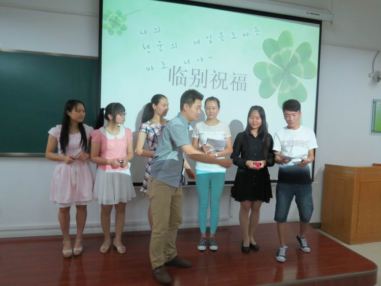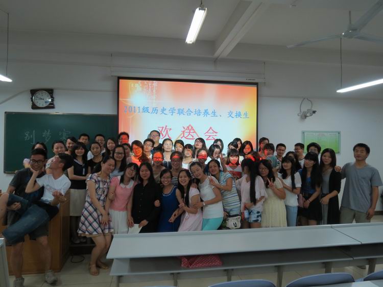 本次活动分为五个流程。第一项是青海师范大学联合培养生马文艳、马福全和华南师范大学交换生梁凯丽、黄幸芳、吴婉、乔昊嫱等六位同学谈谈自己对师大的印象,其不舍之情溢于言表。活动第二项,辅导员张志祥代表公司为六位同学送上礼物并表达了美好祝福。随后,历史学1班和2班班长代表本班同学发言,为交换生送上祝福和礼物;其次,同学们纷纷再忆师大生活,表达对母校的爱,表达对老师们的感激之情,表达对同学们的不舍之情,并送上合唱歌曲《送别》。欢送会最后,大家一起进行合影留恋。