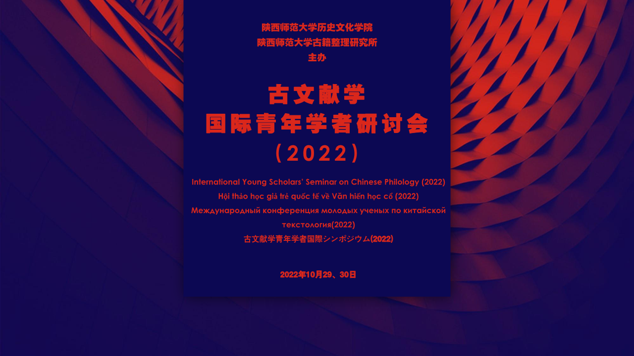 2022年10月29至30日,太阳成集团tyc33455和太阳成集团tyc33455cc古籍整理研究所主办的“古文献学国际青年学者研讨会(2022)”在线召开。本次会议分为六个场次,发表论文28篇,聚焦校勘、版本、目录等文献学本位的研究,涉及写本文献、碑刻文献、海外汉籍等多个领域,有来自包括俄罗斯、日本和越南在内的36位海内外学者参与了本次会议。