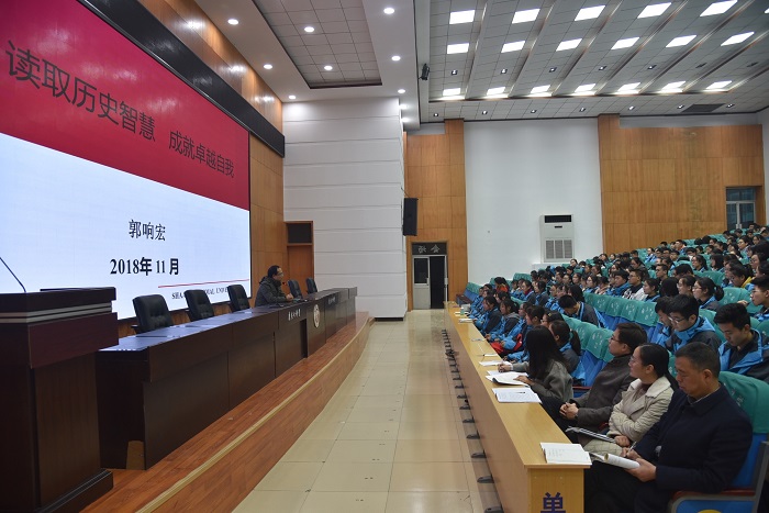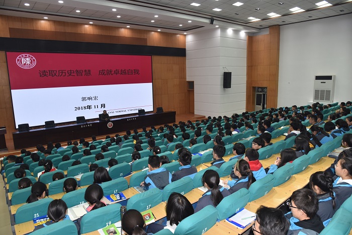 员工丁茜、高二文科部分老师和高二文科全体同学400余人参加了讲座。