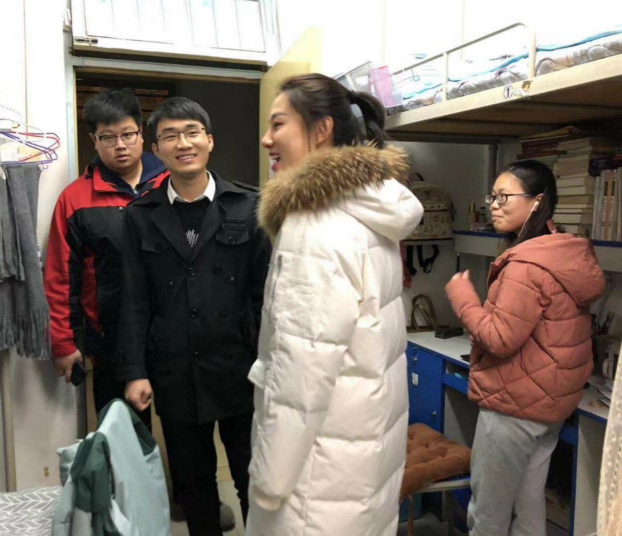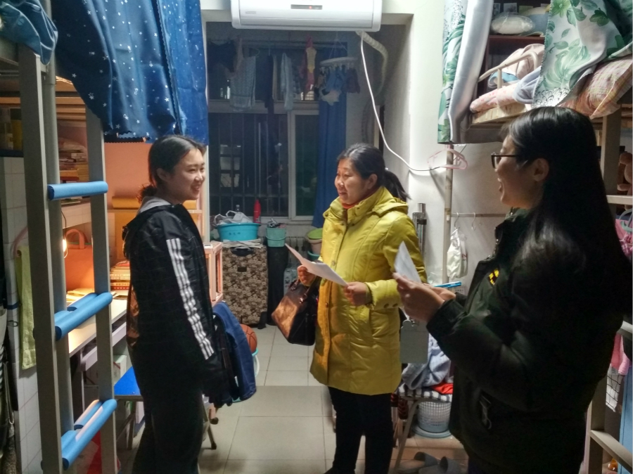 晚上,各年级辅导员开始走访员工宿舍。2015级辅导员马瑶和袁世强亲切地询问了员工的就业和考研情况;2016级辅导员王欢询问了员工期末考试准备情况,勉励员工认真备考;2017级辅导员洪海安和吴泓儒在员工宿舍区辅导员工作室和员工进行了谈心谈话,并在宿舍和同学们进行了学习和生活上的沟通。2018级辅导员鲁旭萌为帮助员工提高复习效率,组织员工在期末考试复习期间集体上自习,并在教室和员工进行了亲切互动。